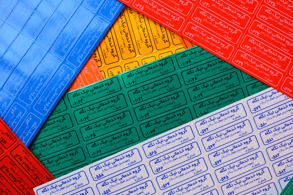 لیبل اموال به دو صورت تک رنگ و چهار رنگ(رنگی) عرضه میگردد